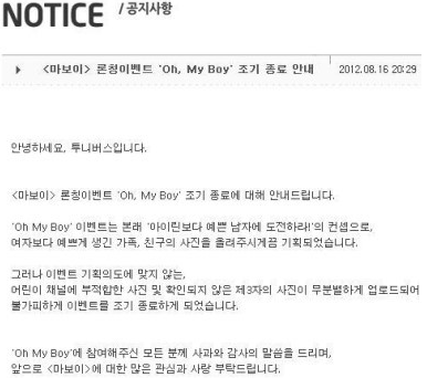 3. 각종19세짤과 게이짤 야짤로도배된 투니버스는 이벤트를강제종료해버림