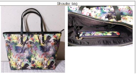 2. 화려한 Painting 효과가 두드러진 Shoulder bag으로 화려한 페인팅 효과가 두드러집니다. 자석단추를 이용한 큰 가방의 경우에는 도난의 위험이 있으므로 지퍼를 이용해 가방을 여닫을 수 있게 제작하였습니다. 밑면에는 네 개의 발장식이 달려있고 내부엔 지갑을 넣을 수 있는 주머니, 립글로즈를 넣을 수 있는 주머니가 있습니다. 여성들을 위한 맞춤 가방이며 NAMETAG, 태슬장식도 가방외부에 달아 고급스러움을 더하였다.