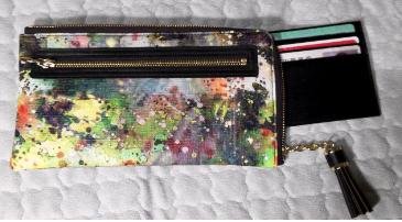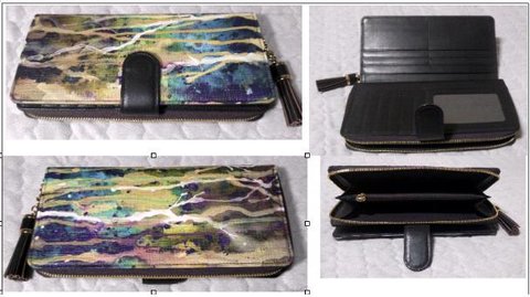 4. 흘러내리는 물감으로 겨울나무의 느낌을 표현해 보았습니다.가방과 Set는 아니고 지갑만 개별적으로 디자인 해 보았습니다. 물감이 흘러내리는 모습이 나무를 연상시키는 디자인입니다.
