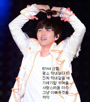 반전매력은 얘도...처음에 블락비모르고 얘봤을때 목소리낮고 무셔운앤줄 알았더니 알고보니 블락비 막내라 카드라...귀여운거 좋아하고...(대표적인 예 탤찡(?)) 핫 삥꾸우웅~♥
