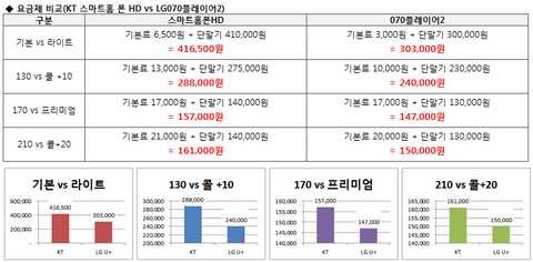 KT 스마트홈폰HD와 LG 070플레이어2 넘 고민되네요!