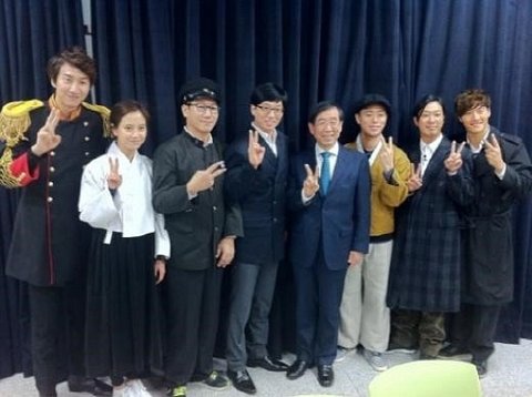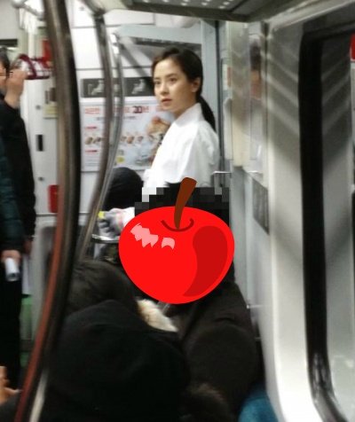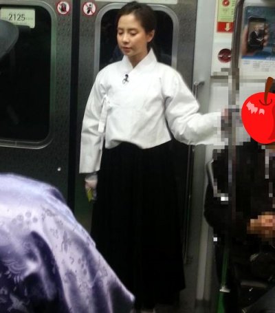 얼마전 런닝맨 촬영 때문인지 유관순 열사 의상을 입고 지하철에 탄 송지효