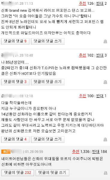 신화가 14년동안 활동한 이유가 고작 아가들한테 늙었단 소리 듣기위해서였던거야?