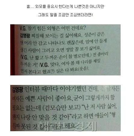 글고 지금 인터넷 댓글보니 남자들은 김영광 엄청쉴드치고 오크녀드립하고 있는데