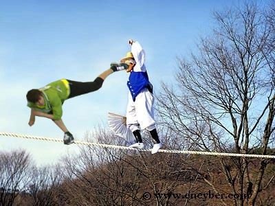 뒤에 따라오던 줄타기의 달인의 안면을 뒤후려차기로 강타!