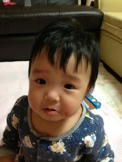 두건이 벗겨져서 이마가 더 톡 튀어나와 보이네요~