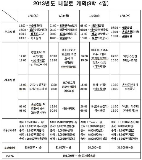 그래서 최종 여행기간은 1/13 ~1/17(4박5일)