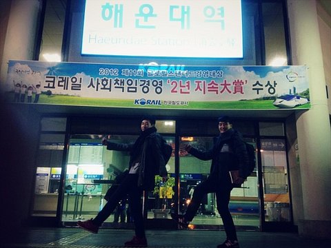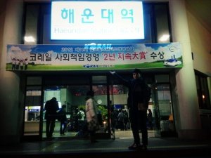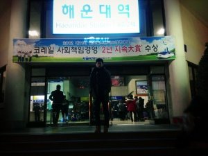 궁디 땀띠나게 기차를 타고 밤 9시 !! 드디어 해운대역 도착 !!