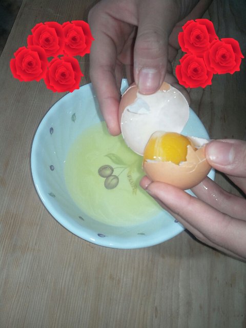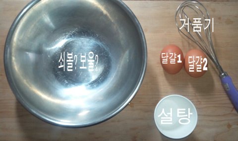 달걀2개, 거품기, 설탕 두스푼, 쇠양푼임