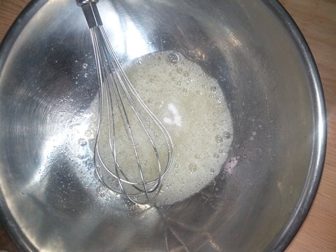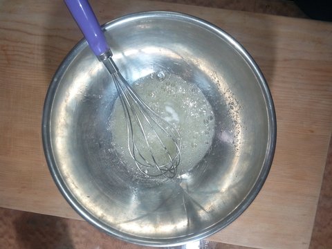 그담에 양푼에 달걀흰자만 넣고 거품기로 겁나 저어줌