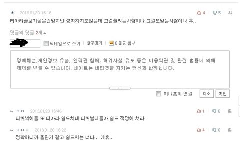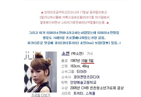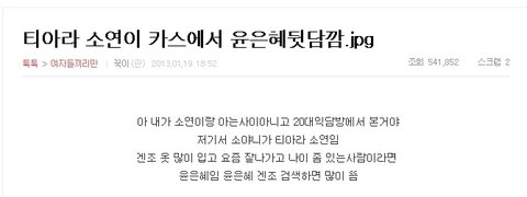 니들이 티아라 존1나게 까는거 이유 부여하고 있긴 하지. 왕따니 뭐니 하면서