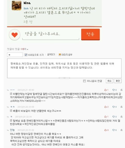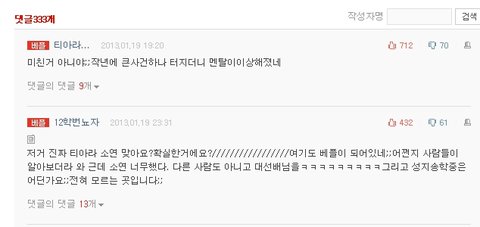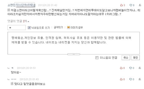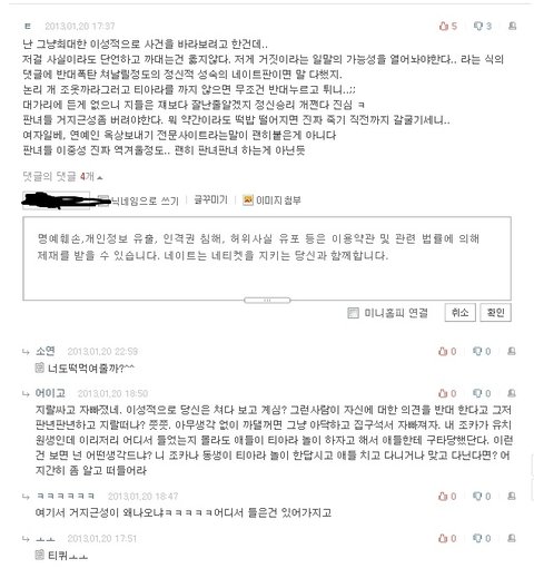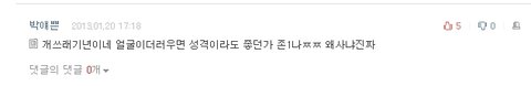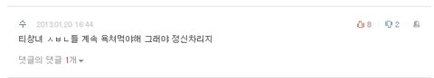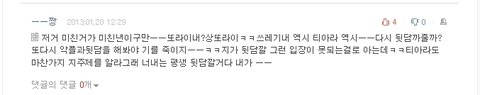 자기가 싫어하는 티아라 기사에 굳이 들어와서는 욕한마디 쓰고가겠징
