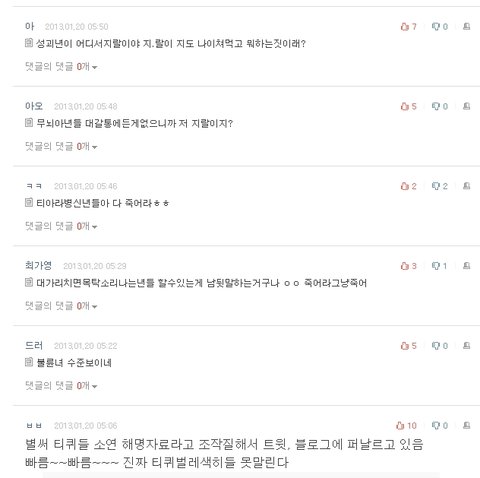 단지 티아라가 저지른 물의 때문에 까는거라면 ㅂㅂ관련 글도 티아라꺼만큼 개털려있어야하는게 정상아님?