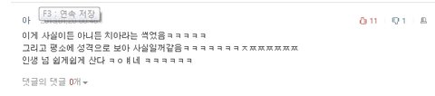 이 글 그리 좋아보이진 않지만 어쨌든.. 맨밑에 ㅇ 댓댓쓴거보셈 남자였어도 저런건 당연히 욕한대 ㅋㅋㅋㅋㅋㅋㅋㅋㅋ좀있다 남자것도 나올꺼임