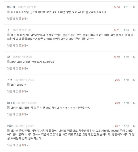 네이트는 범죄자도 좋아하면서ㅋㅋㅋㅋㅋ 여자애들에겐 왜캐 빢빡한겨 ㅠㅠ