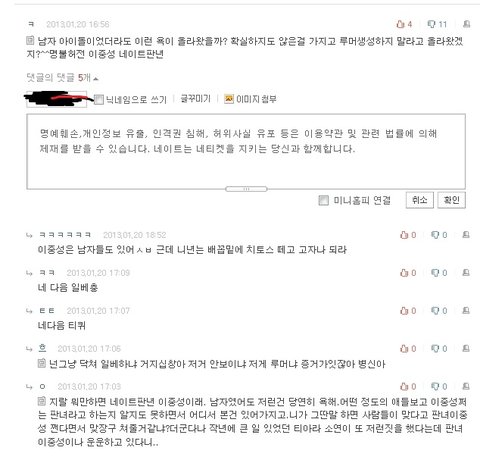 네이트에선 일반적인 인신공격