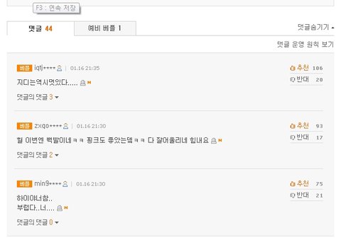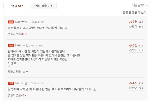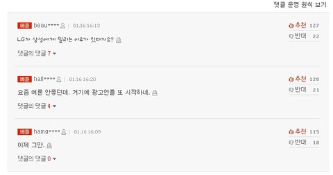 이런 느낌의 글들이 댓글판의 지배적인 분위기.