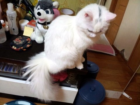 그와중에 사료 먹는 구름양 ㅋㅋㅋ