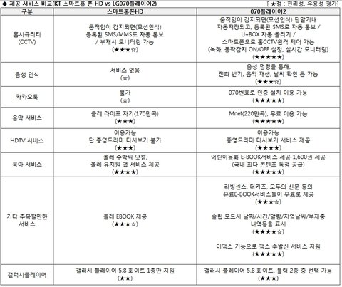 KT의 스마트 홈 폰 HD랑 LG유플러스의 070플레이어2중에서