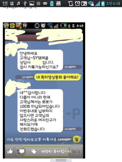 나도 남친에게 요즘 떠돌아 다니는 그 텔레콤 문자를해보기로함.ㅑ