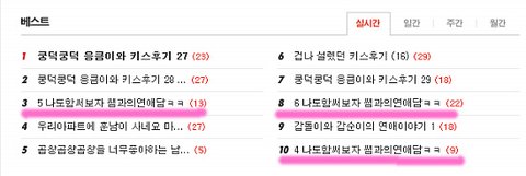 실시간 베스트에 3,8,10위!! 무려 세개나![]()