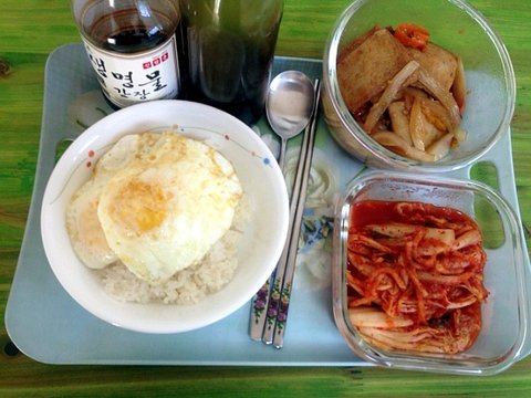 반찬 없고 바쁜 아침에는 반숙 계란 올려서 간장이랑 챔기름 넣고 쓱쓱 비벼먹어야 맛나지요.