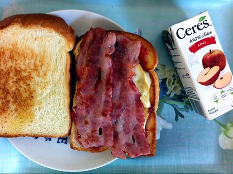 7. 베이컨+계란+치즈를 넣은 토스트&내가 사랑하는 세레스 사과주스