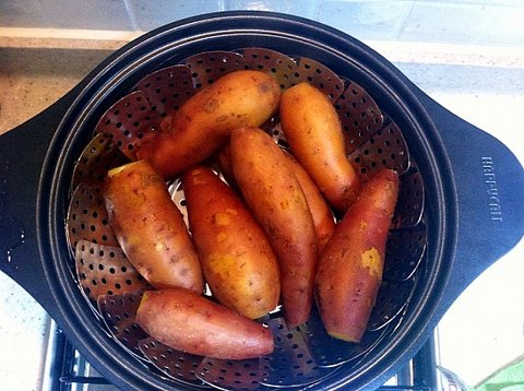 어느날 막내이모가 호박고구마 한박스를 택배로 보내줘서 한동안 맛나게 쪄서 잘 먹긔.