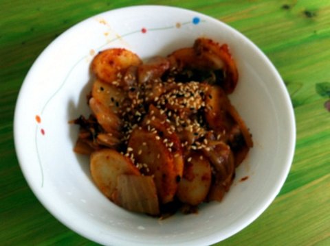 맨 처음으로 시도해봤던 간단요리임. 참치 작은거 한캔이랑 묵은지 그리고 양파 잘게 다져 볶아서