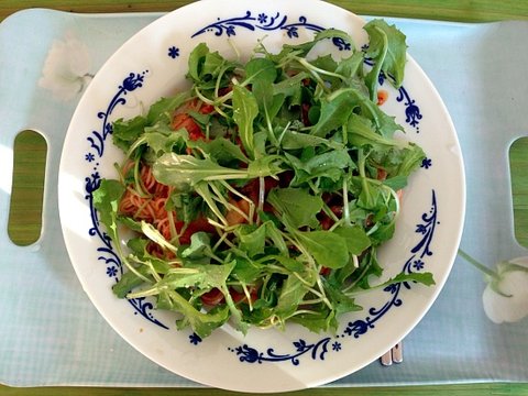 위에 어린잎 올려서 건강도 챙기고 입맛도 되살아나고 1석 2조.