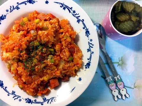 남은 야채들 잘게 다져서 볶아주고 토마토소스에 밥 한공기 넣어서 쉐킷쉐킷 후 치즈 녹여주면 맛있는 한끼 식사 완성. (리조또 별거 없죠?)