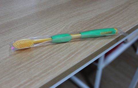 나는 그 모습을 물끄러미 봤는데 받으신 사람들은 다 빈자리에 칫솔과 종이를 나두시더라고요