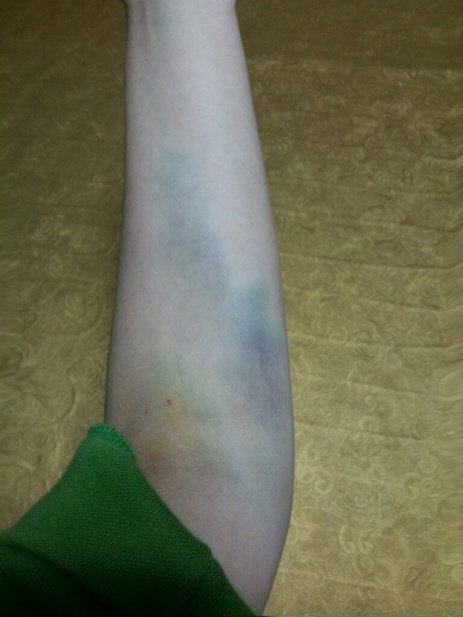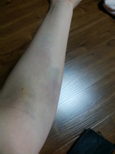 헌혈후 이틀뒤 사진임. 저 푸르스름노리끼리한 멍들 보임? 이때부터 시작됨..