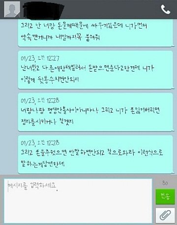 다음날 학교에 가는길에 용돈기입장 얘기를하니까 갑자기 정색을하면서 "빨리 줄께" 이러는거에요 어이가없어서 알겟다고하고 넘겼는데 그게 10월인가 11월이였을꺼에요 근데 아직까지 못받앗어요![]()