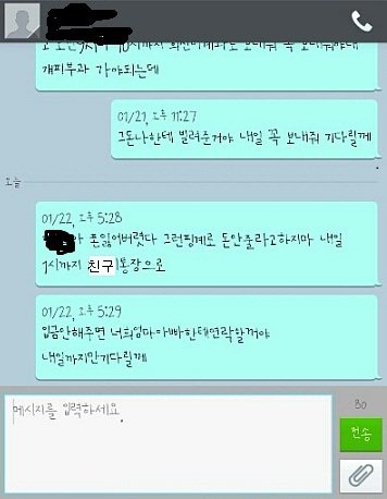 달라고달라고해도 안주고 돈이없다고 야간택배해서준다고 그런식으로 하는거에요 근데 몇일전에 집을나왔다는거에요 집나왔으니까 야간택배를한다고 하고선준다고 그런식으로 말을하고 야간택배하고 바로다음날 돈달라하니까 자기가 가출을해서 필요한거삿다고 다음에준다고 그런식으로 말을한거에요 그래서 13일에 연락을하니까 18일에 돈을준데요 근데 다시 18일에 연락하니까 강원도라고 하네요ㅋㅋㅋㅋ 강원도에서 야간하고 22일에 친구통장으로 입금해준다해서 기다렸죠 그런데 입금들어온게 하나도 없는거에요ㅋㅋㅋㅋ 그래서 전화를하니까 5번? 그정도 안받다가 갑자기 다른여자애가받아서 통화를하니까 통화내용이 (빨강이저에요)