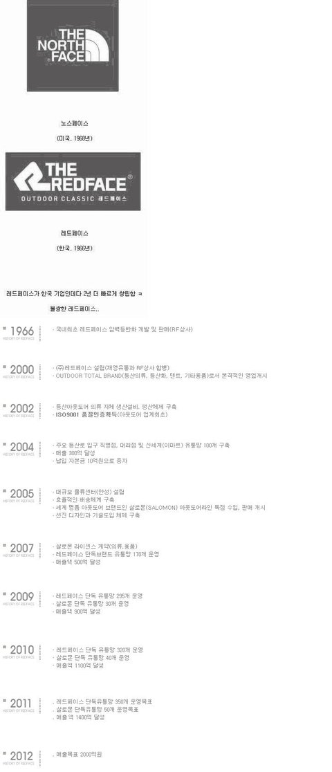 레드페이스가 한국 기업인데다 2년 더 빠르게 창립함 ㅋ
