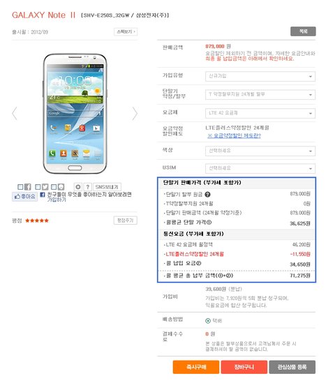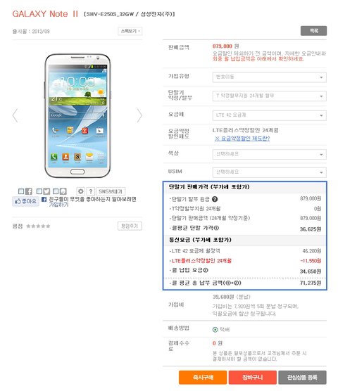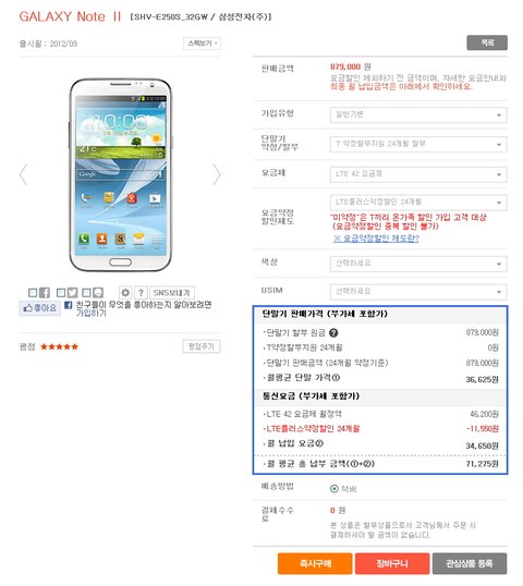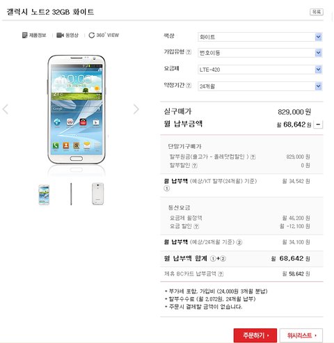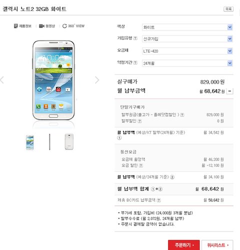 갤럭시노트2 가격비교 42요금제 현재 기준입니다 가격변동이 계속 있다는걸 참고하시길..아직까진 올레샵이 좀 유리한거 같아요