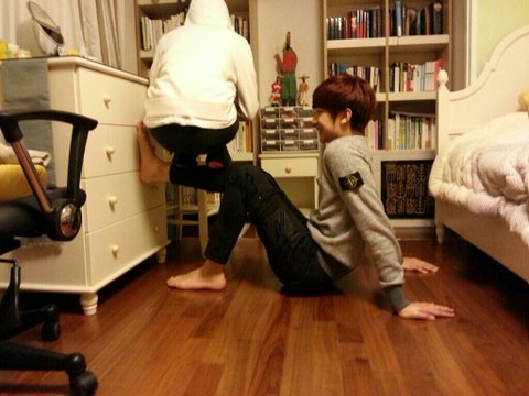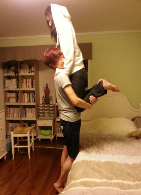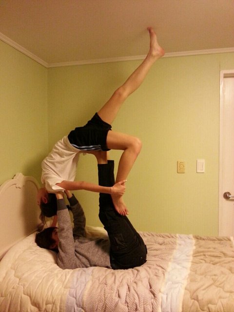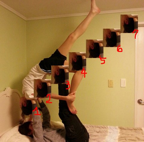 쯔안! 이게 요즘 페이스북에 많이 돌아 다니더라구요 ! 외국인 남매가 아주 훈훈하게 남동생을 종아리 위에 그것도 ^^ 누나가 ^^ 우리 누나 보고있나 ? 하 어찌됬든.. 보여주면서 우리 이것도 하자 ! 이러고 바로 자세를 취했죠 .. 근데 저 사진은 되게 평온 해보이는데 시작부터 삐그덕 한 .. 위에서 중심도 못잡고 저의 근육이란 찾아볼수도 없는 남자 다리 맞나..흑 (셀프 털기) 아주 버티지도 못하고 하지만 엄마 젖 빨던 힘까지 모아서 !!! 드디어 했습니다 ! 쟈 사진 나갑니다!