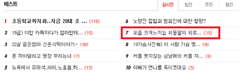 고1때까지만 해도 정말 전혀 외동딸이라는것에 대해 외로움같은건 없었는데 고2때 부터 점점 심해지더니 지금은 외로워서 울정도까지 되어버렸네요,,,