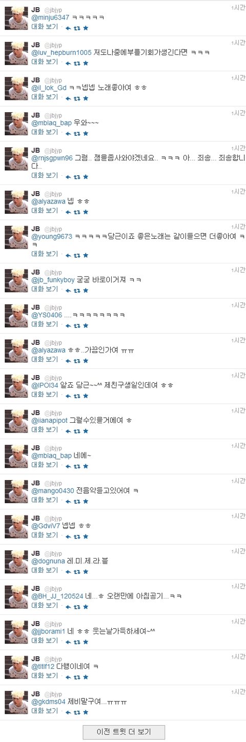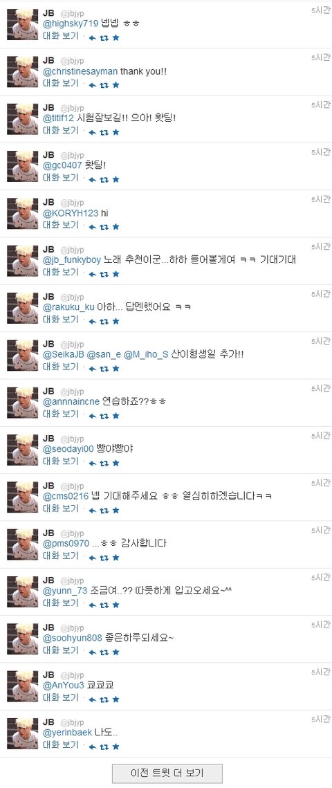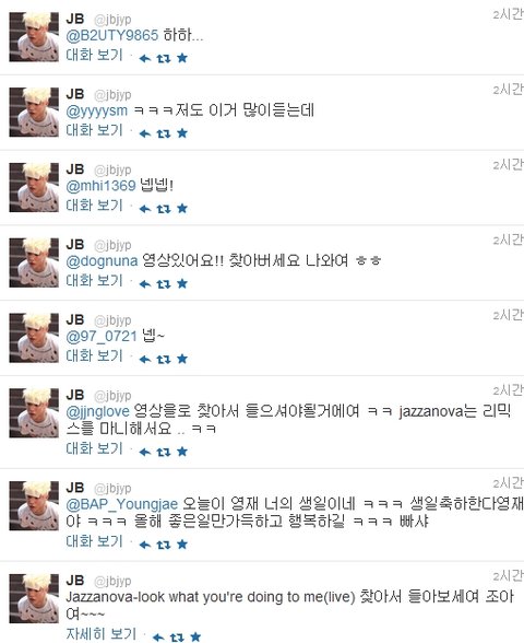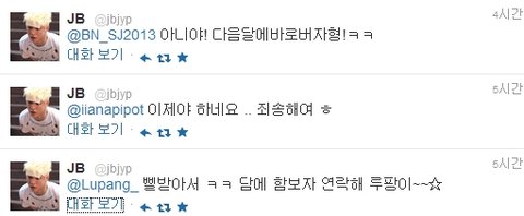어제 JB가 보낸 멘션들이랍니다.