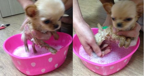 욕조가 아주 이쁘죠? ㅋ하트 바가지 입니당 애기 추울까바 방에서 목욕중입니당