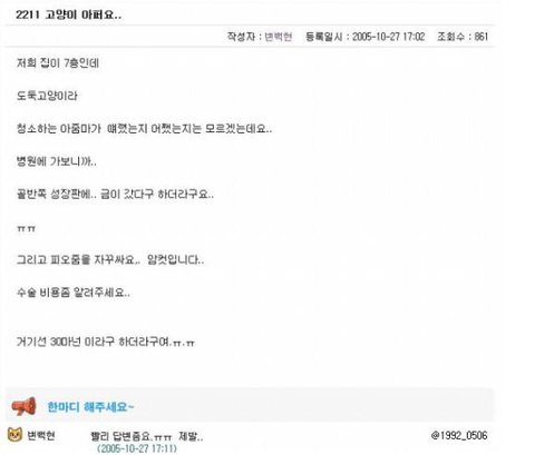 중학생 남자애가 다친것같은 도둑고양이 데리고 병원간거보고.