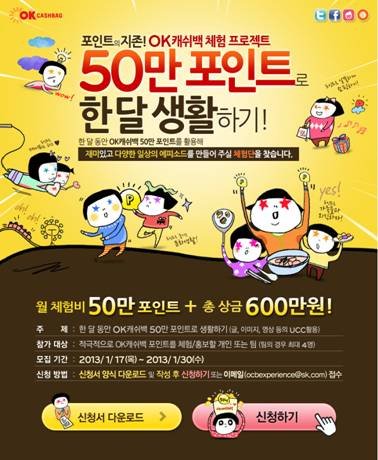 내용은 보셨다시피 체험단이 되면 50만 포인트를 받게 됩니다.
