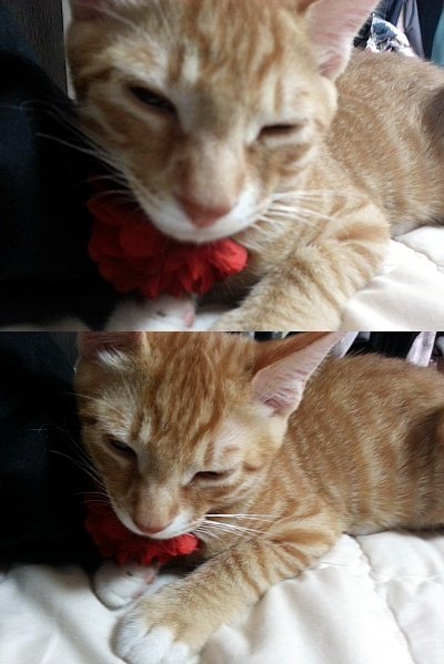 무릎에서 자다가 손길에 잠에서 깨버린 예민이찌