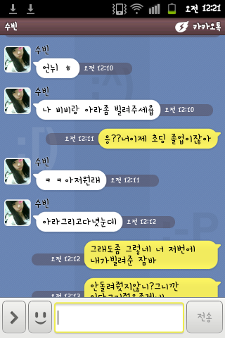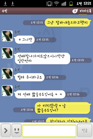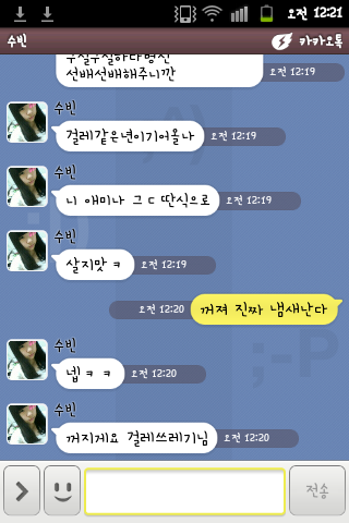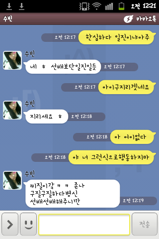 톡되면 얘 소개시켜준애나 몆몆애들한테 얘 카톡내용보여주고