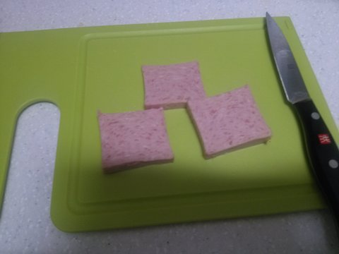 햄을 네모나게 잘라주세요!!!