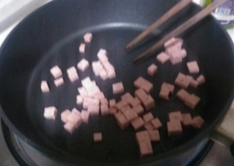 팬에 기름을 쪼오오오꼼 두르고 햄을 쉐킷쉐킷 볶아주세요!!