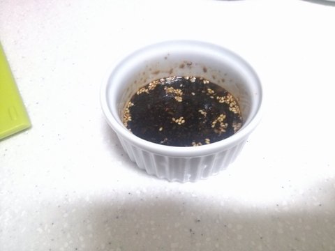 간장 2-3숟가락 + 다진마늘 반숟가락 + 깨 조금 + 올리고당 1/3숟가락 + 참기름 조금 + 후추 조금