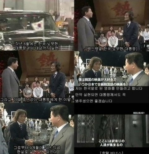 "한국말로 된 영화를 일본에서 꼭 만들생각이다. 대통령께서도 꼭 봐주셨으면 한다."