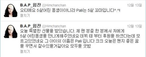 <후원을 독려하는 B.A.P힘찬의 트윗>